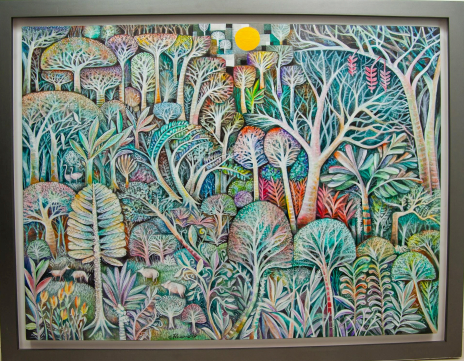 Artist: Christopher “Chris” Pizarro Title: Enchanted Forest Medium: Acrylic on Canvas Size: 36 X 48 In Year created: 2019